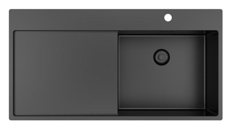 Pure.Sink Exclusivo Gun Metal Spülbecken mit Abtropffläche 100 x 52 cm Wasserhahn rechts PEX47100RT-61