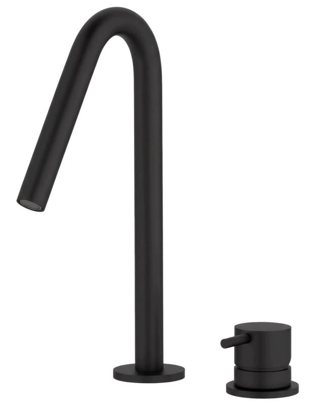 Waterevolution Flow 2-loch Waschtischarmatur Schwarz matt mit kleinem 127mm V-Auslauf T112VPR